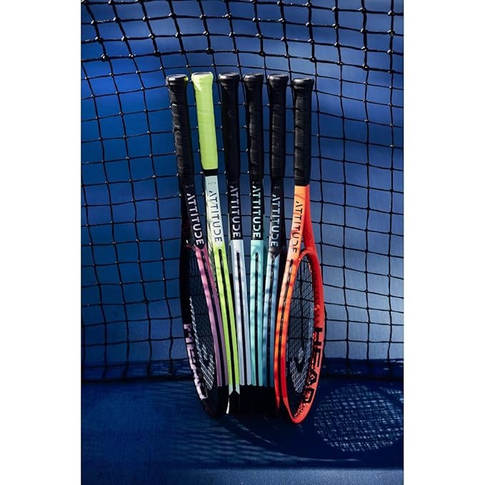 SWEETSPOT: The MX Attitude Comp pre-strung tennis racquet boasts a generously sized sweet spot, a feature that caters perfectly to both intermediate players seeking to refine their skills and beginners looking to develop their technique.