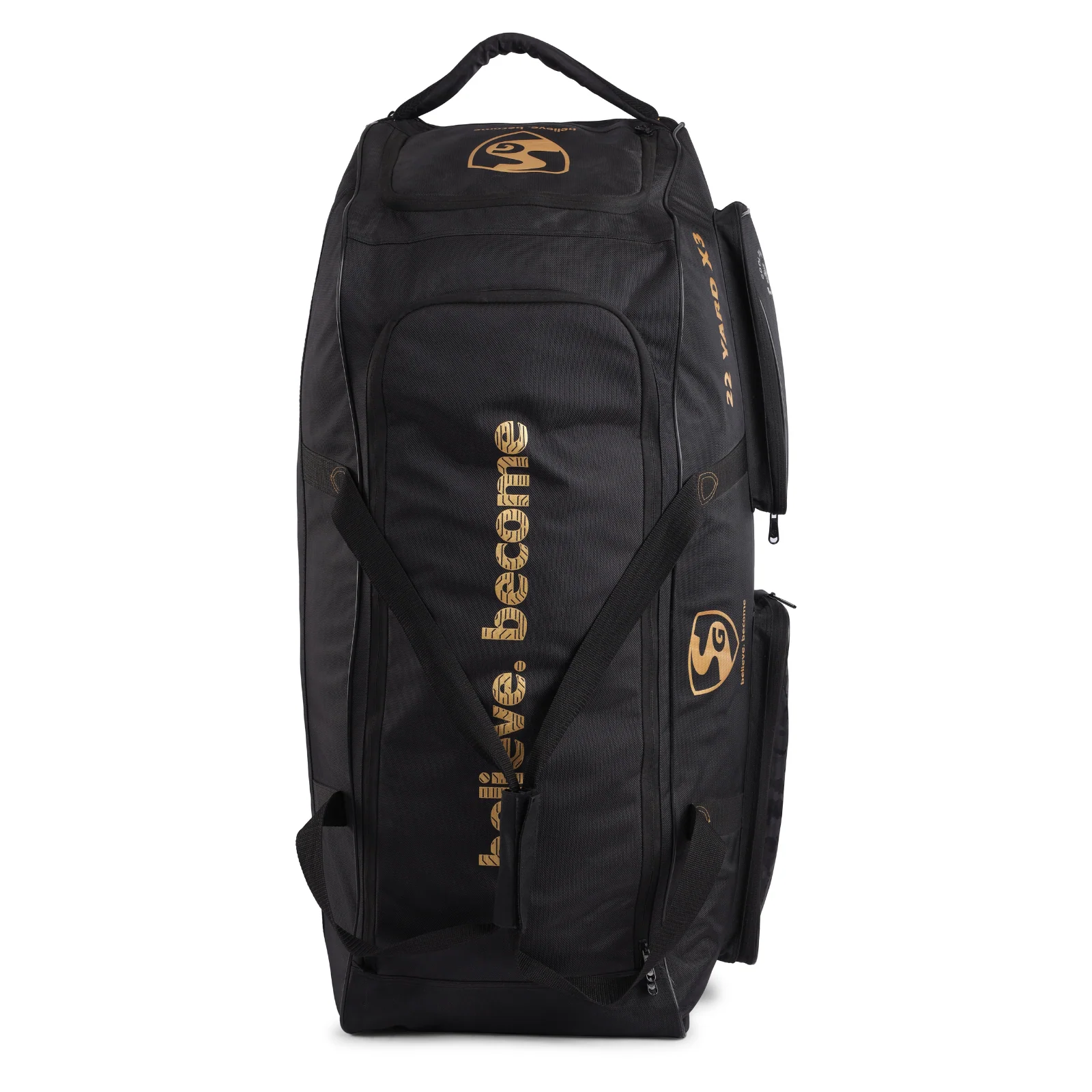 Equipped with heavy-duty wheels and a strong pull handle, the bag allows effortless movement on all surfaces. Reinforced straps and protective base support add to its strength and stability, ensuring your gear stays safe during travel. The SG 22 Yard X3V Wheelie combines space, durability, and convenience—making it the ideal companion for cricketers who value comfort and reliability on the go.
