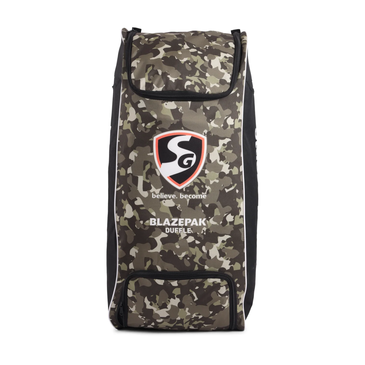 The SG Blazepak Duffle is the ideal wheelie kit bag for cricketers who need to carry all their essential gear with ease. Made from water-resistant, premium fabric, this duffle bag is highly durable and built to withstand the rigors of travel and regular use. It features SG customized zips and runners, two bat-size inside storage sleeves, and a separate shoe pocket for added convenience. The easy top-access main compartment, combined with two medium wheels, ensures better traction and control. For comfort, the bag includes 10 mm mesh-padded shoulder straps for airflow, cushioning, and comfort, along with a fabricated grip handle supported by mesh for better grip. Special bartack stitches provide additional strength and durability, while an extra mesh pocket allows for easy storage of water bottles or accessories.