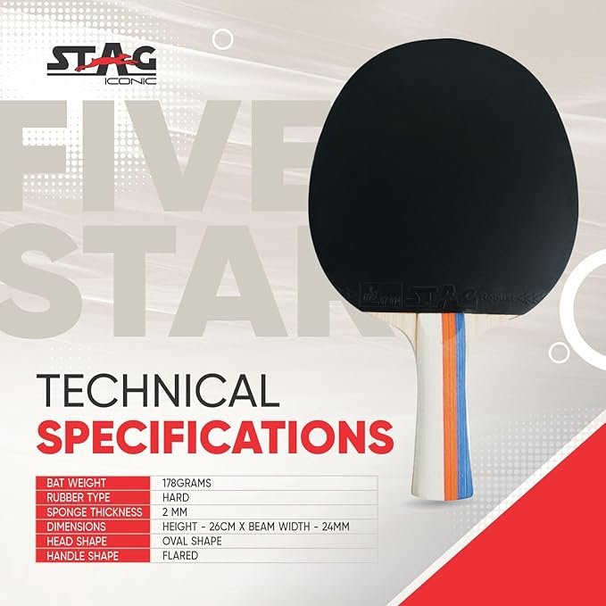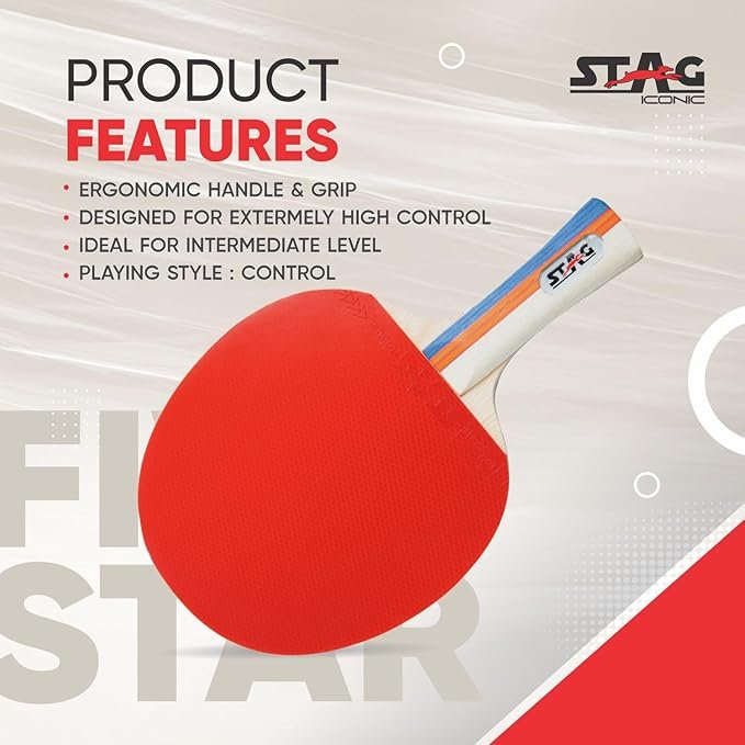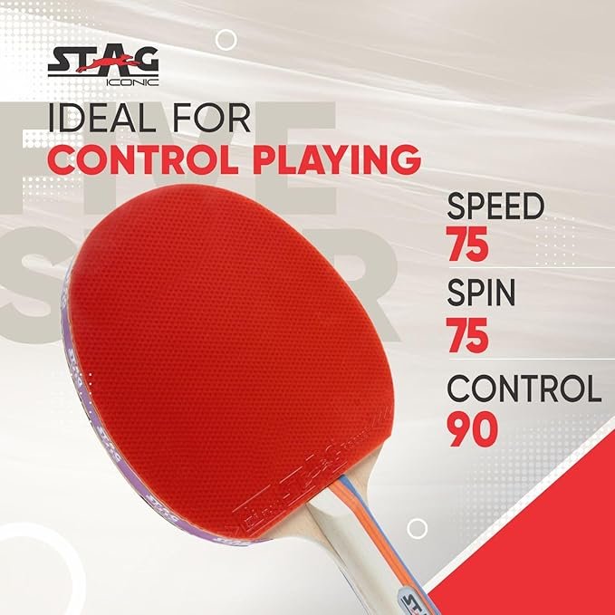PACKAGE CONTENTS: 1 STAG ICONIC (5-Star) Table Tennis Racquet, designed for enhanced playability and performance.