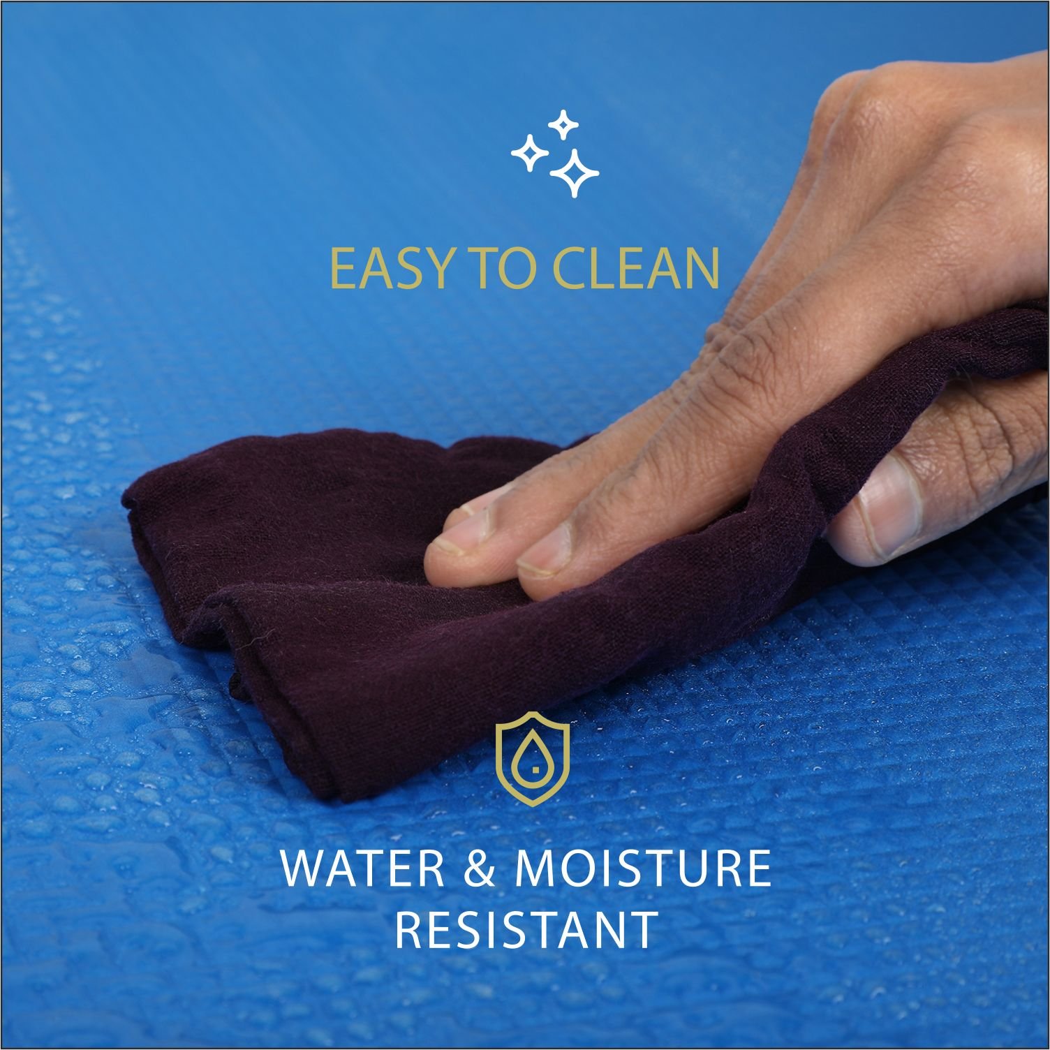 The product is equipped with straps that make it easy to roll up and bundle, making it easier to store. You can use a cloth with soapy water to wipe the mat; Then rinse with water and wipe dry with a towel or cloth.